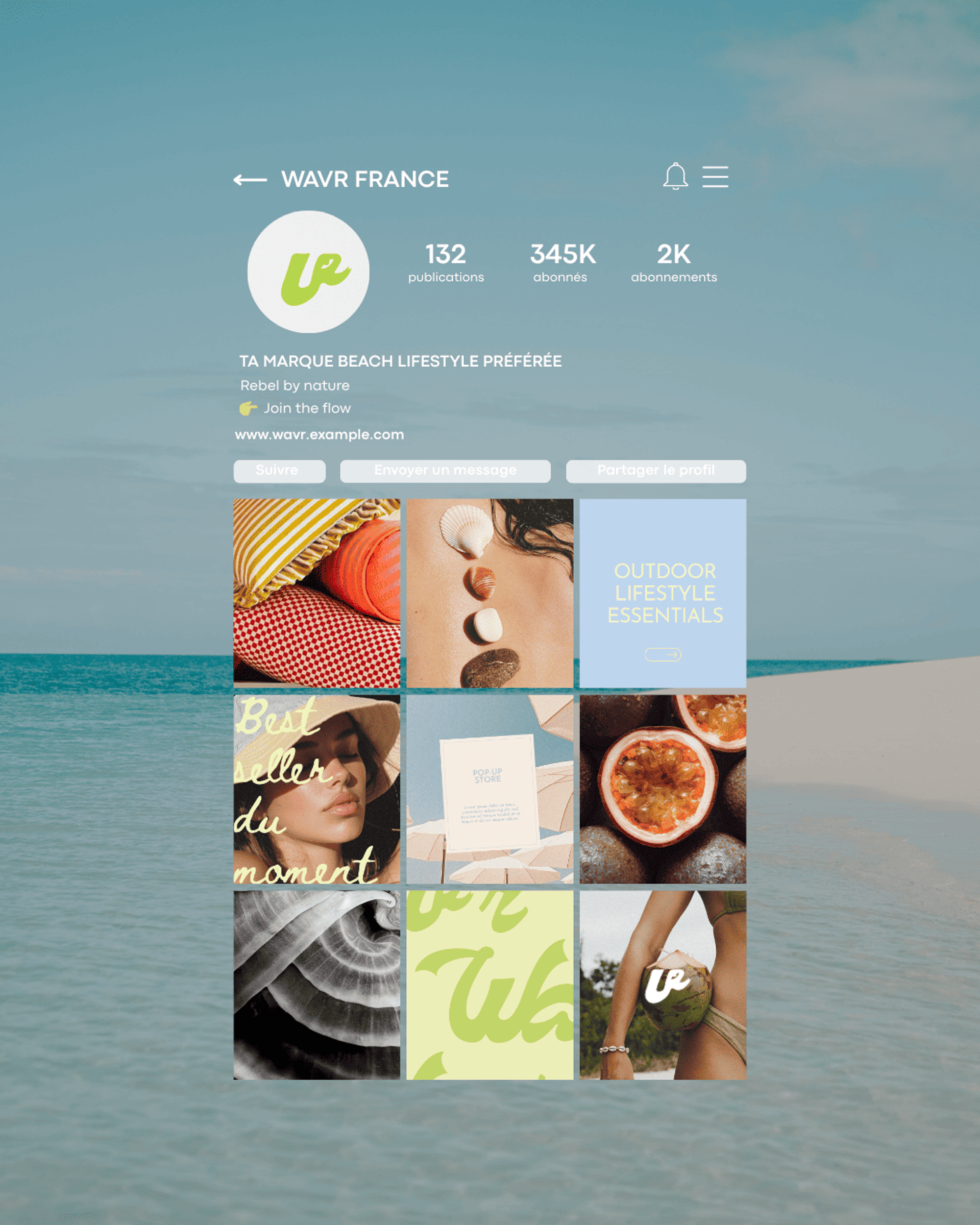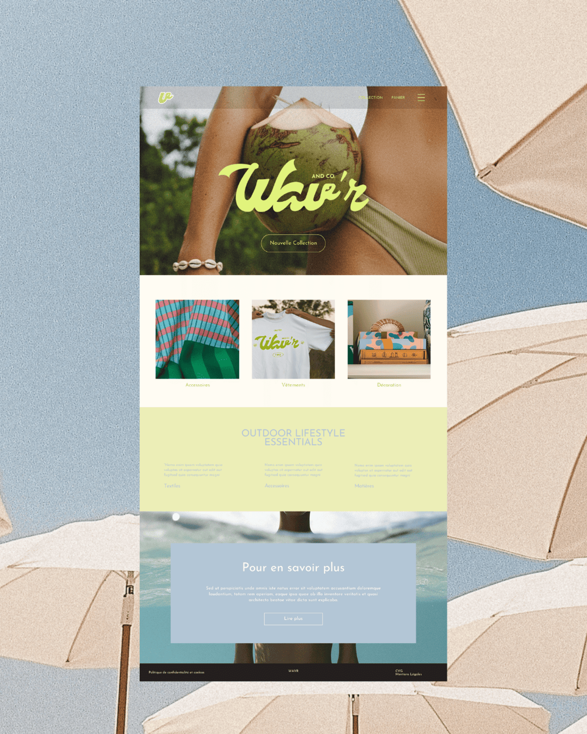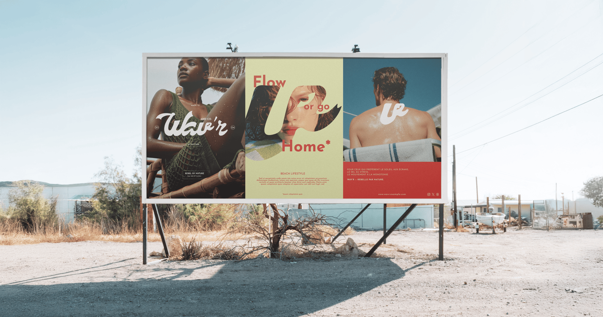 [Projet fictif] Née entre soleil et embruns, WAV’R s’inspire d’un mode de vie guidé par le mouvement, la lumière et l’énergie des grands espaces. La marque s’adresse à celles et ceux qui vivent dehors, qui suivent leur propre rythme et qui cultivent une vision positive, colorée et libre du quotidien. Plus qu’un vestiaire, WAV’R propose un état d’esprit : celui du flow, de la spontanéité et des good vibes assumées.